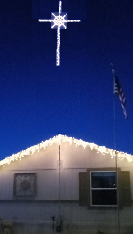 I was taking down my star of Bethlehem Christmas decoration in December, 2023. It was built on an 8 foot copper pipe that had a 4 foot cross bar and 2 foot long spokes at 45 degree angles plus a 20 inch diameter circle in the center. The entire assembly was covered with white lights.